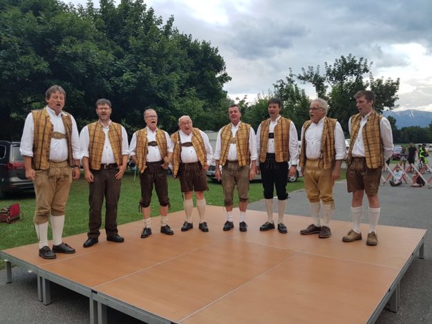 Mit den Freunden der Schuhplattlergruppe Sattendorf un ddem Trio MOS steht Mitte Juli jeden Jahres ein Heimatabend im Campingbad in „großer Besetzung“ auf dem Programm. Diesmal im Doppelquartett wurde wieder in einen lauen Sommerabend „hineingesungen“ und ein Bierchen unter freiem Himmel genossen !