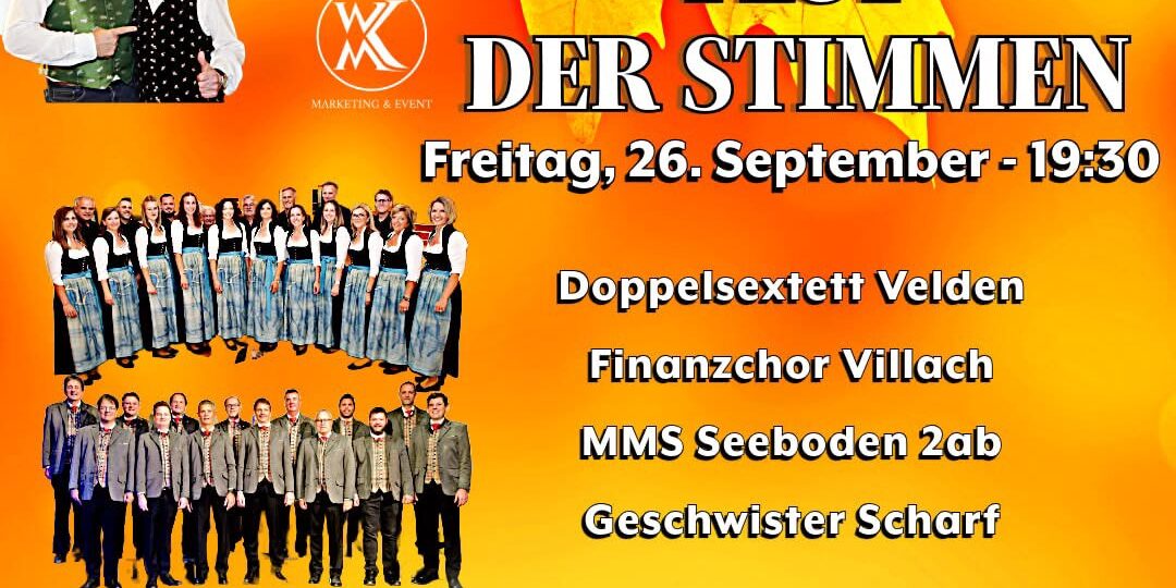Nach einer außergewöhnlich langen Sommerpause starten wir im September mit einem besonderen Konzert im CCV Villach, Gottfried von Einem Saal, in der Reihe „Fest der Stimmen“ in das neue Vereinsjahr. Wir freun‘ uns !!