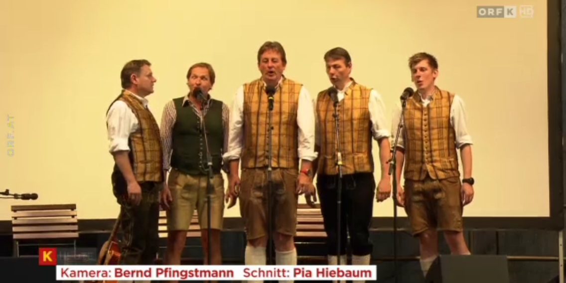 Vom Landesstudio Kärnten wurde ein Österreich Bild mit dem Schwerpunkt „Villacher Kirchtag“ produziert und im Rahmen einer feierlichen Vorpremiere in der Brauerei vor erlesenem Publikum präsentiert. Ein Quintett von uns hatte dabei die Ehre, die Gäste mit Kärntner Gesang auf die Filmvorführung und die Brauchtumswoche einzustimmen. Das Bild selbst stammt aus einem Kärnten Heute-Seitenblicke Beitrag, weshalb die geglätteten Gesichtspartien erklärbar sind.